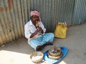 - Berauschter Tagebucheintrag: “Ich war so früh auf dem Markt, dass noch nicht alle ihre Stände aufgebaut hatten. Das war mein Vorteil. So konnte ich ohne in all zu große Bedrängnis zu geraten (“Come and see my shop! Very Cheap!”) in Ruhe durch die Reihen ziehen. Ich habe natürlich das Ein oder Andere gekauft. Dieser Markt besticht aber durch seine Gesamtheit – zwischen Palmen liegend erstrecken sich die Stände bis zum Meer und die Verkäufer kommen aus allen Teilen Indiens und aus Nepal. Selbstverständlich gibt es auch waschechte Hippies, die Ihre selbstgeklöppelten Waren zum Kauf anbieten. Ich hätte wie eine Wahnsinnige loskaufen können, musste mich aber leider zusammenreißen. Dennoch, bunt-glitzernde Patchworkdecken, kleine Staturen und eine Nepaljacke haben es in meinen Besitzt geschafft und ich habe sogar alles, bis auf die Wolljacke, noch in meinen Rucksack stopfen können.”